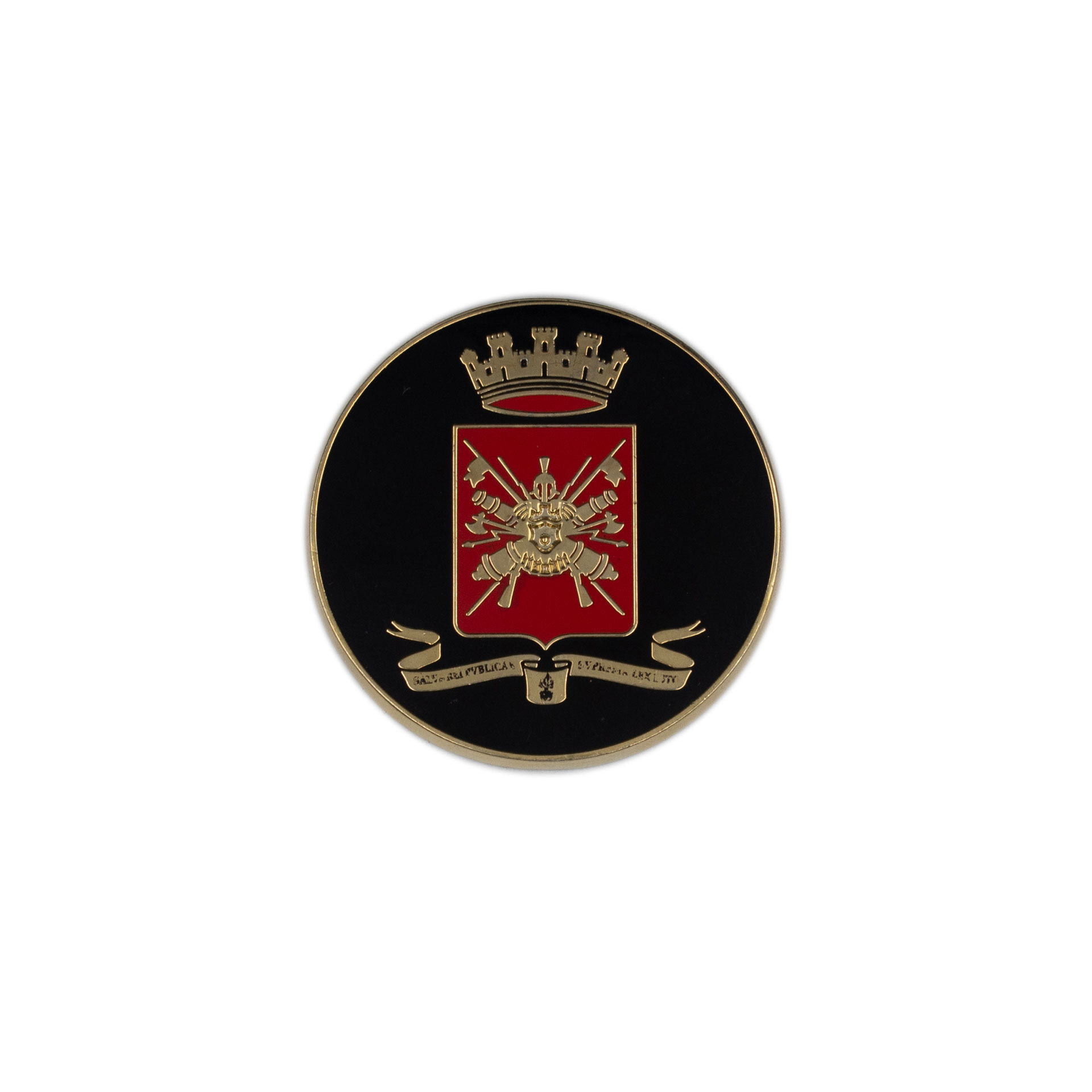 FERMACARTE PICCOLO IN METALLO CON STEMMA ARALDICO CON FRONTE SMALTATO E RETRO NEUTRO O INCISO, DIAMETRO 45 MM, SPESSORE 3 MM