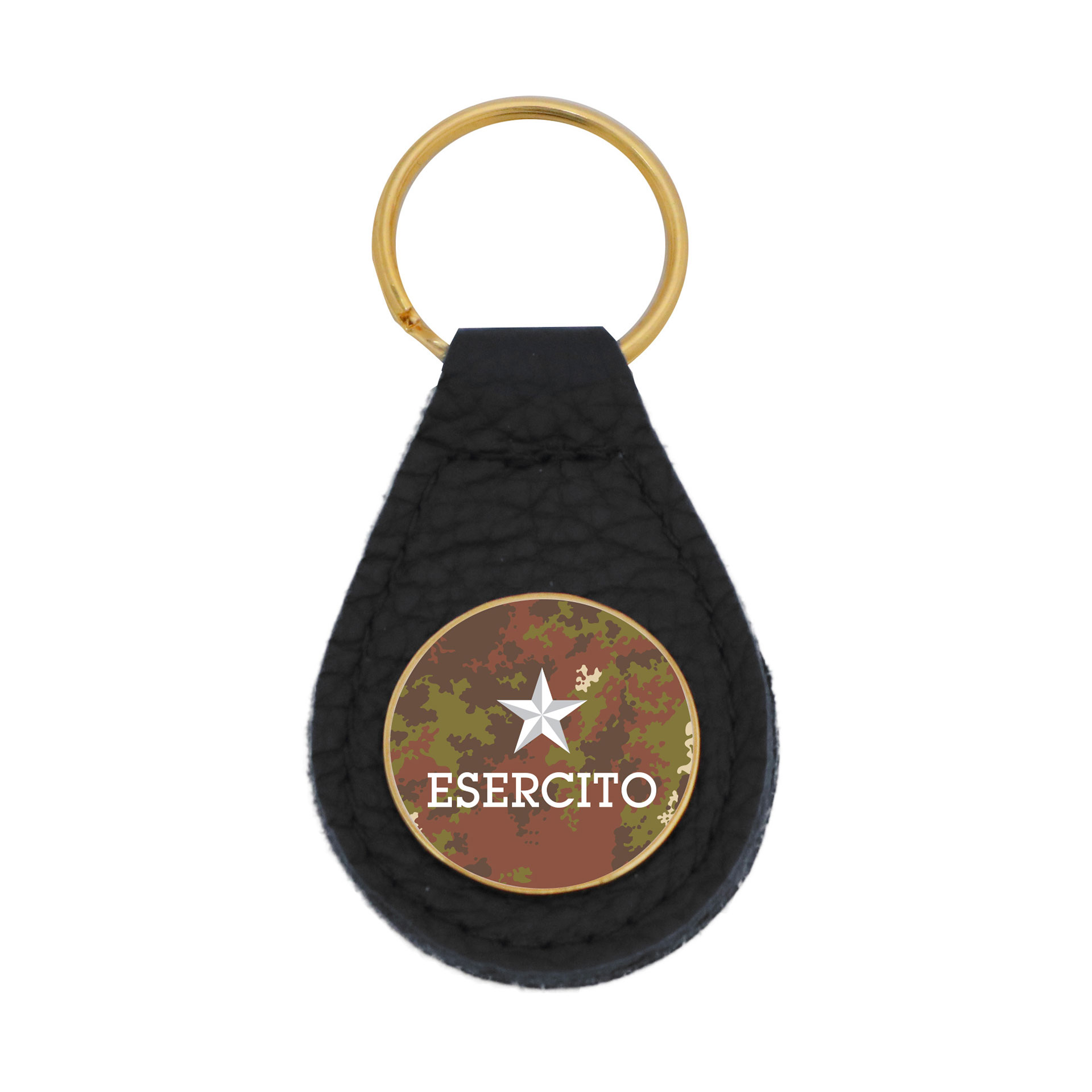 PORTACHIAVI IN SIMILPELLE NERA E LOGO SU ETICHETTA